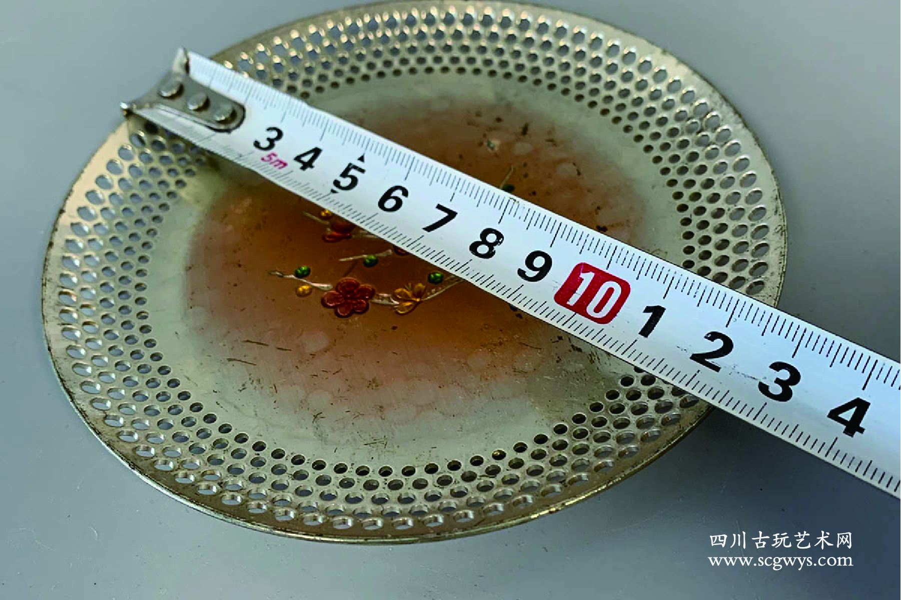 日本回流铜铸镂空花刻茶托