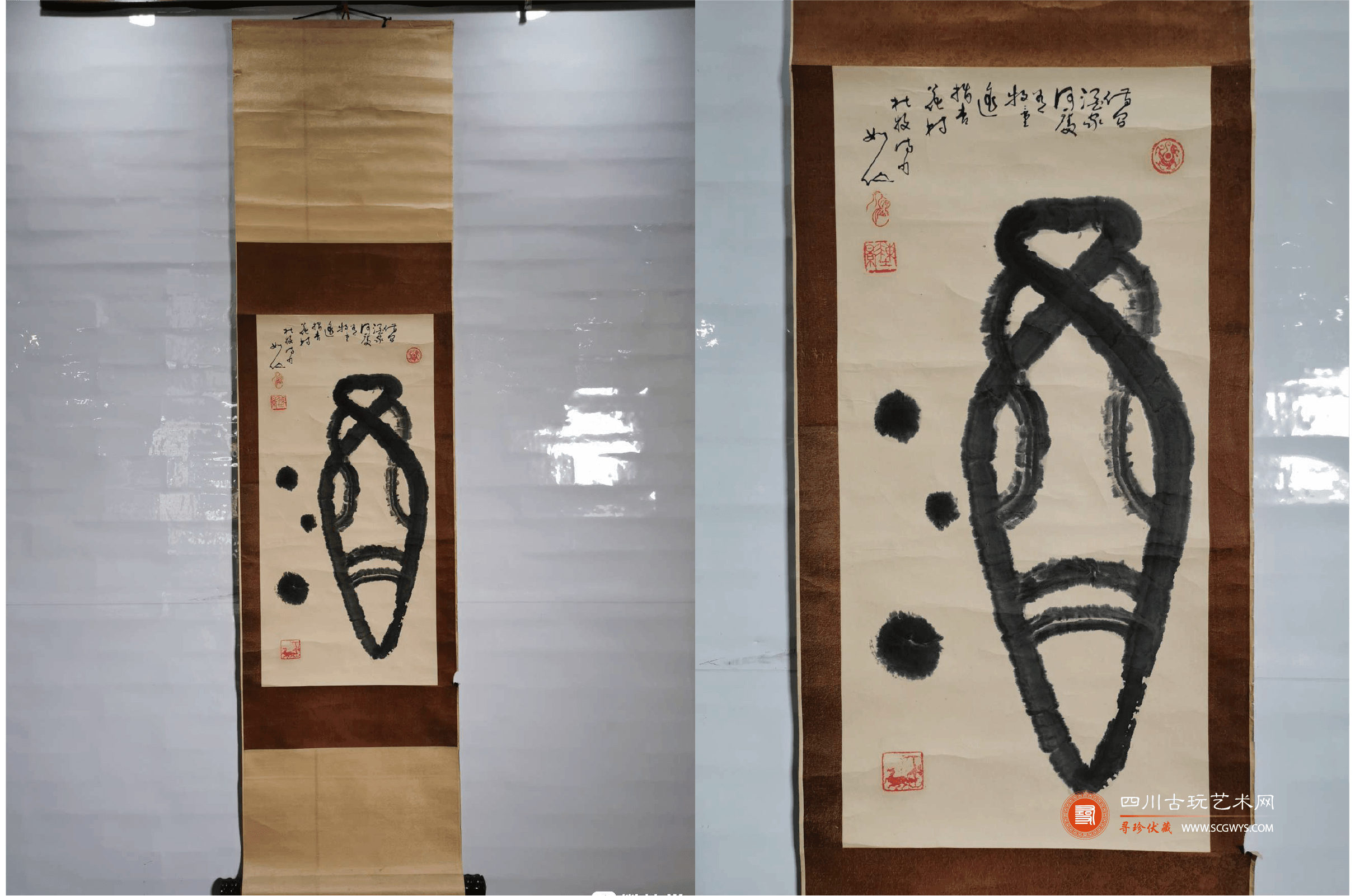 藏品尺寸:装裱尺寸长153厘米 宽38.5厘米 画芯尺寸:长65厘米 宽31厘米