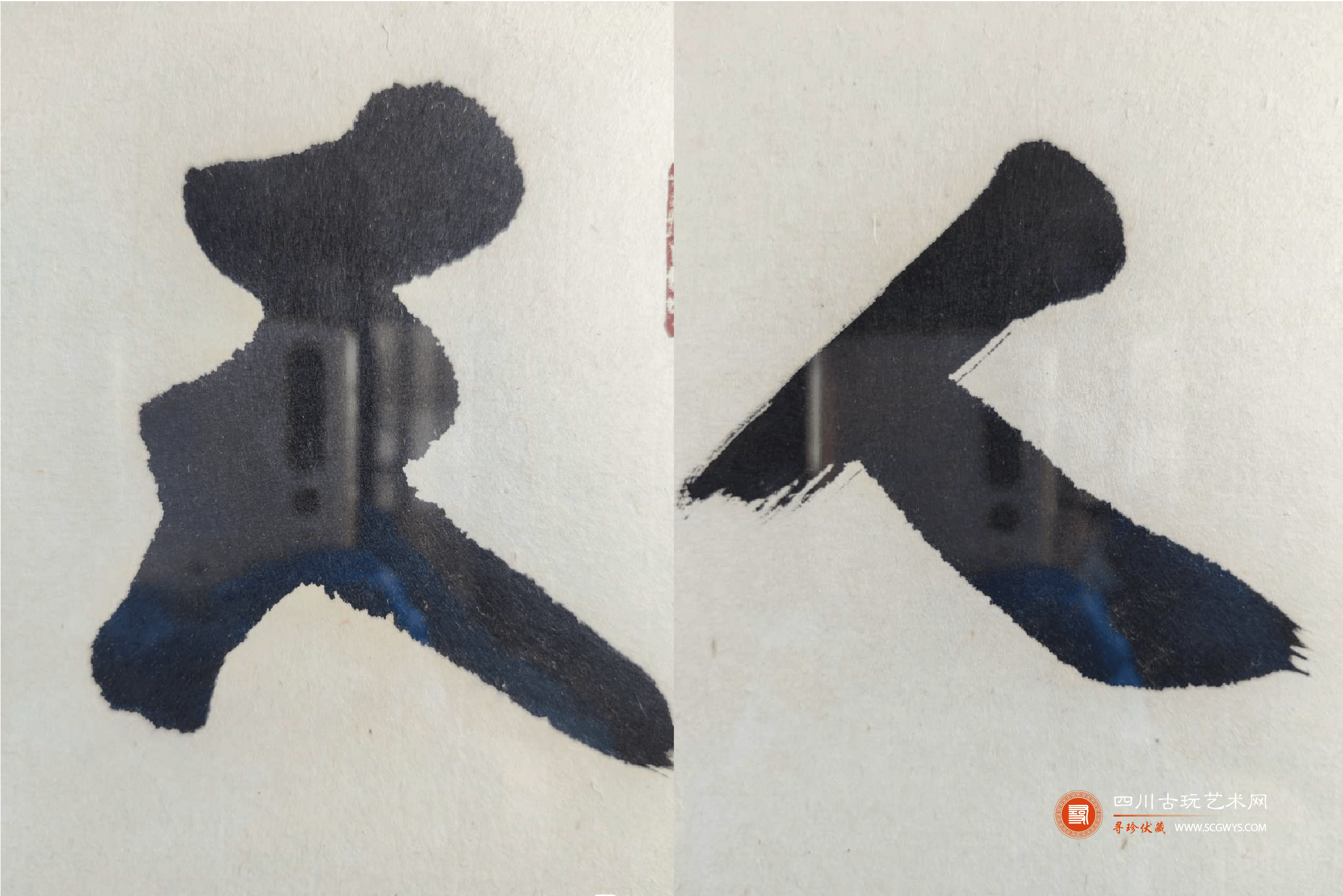 藏品鉴定:根据装裱包浆、画芯材质、墨迹、磨损痕迹初步判断非人为做旧。