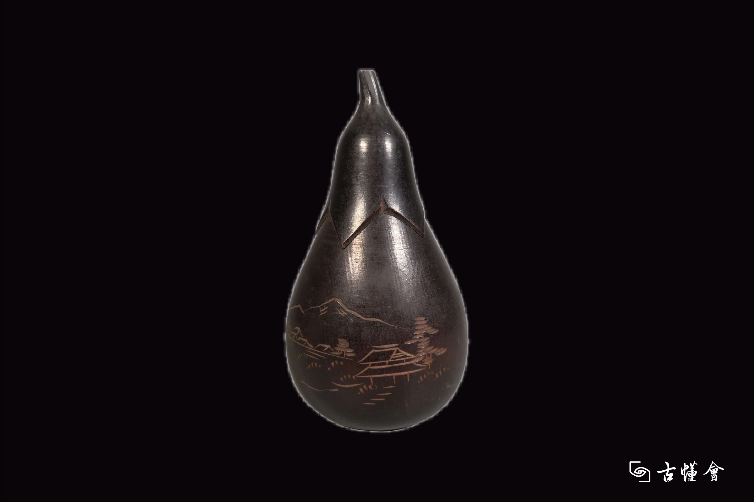 日本茄形木雕茶入
